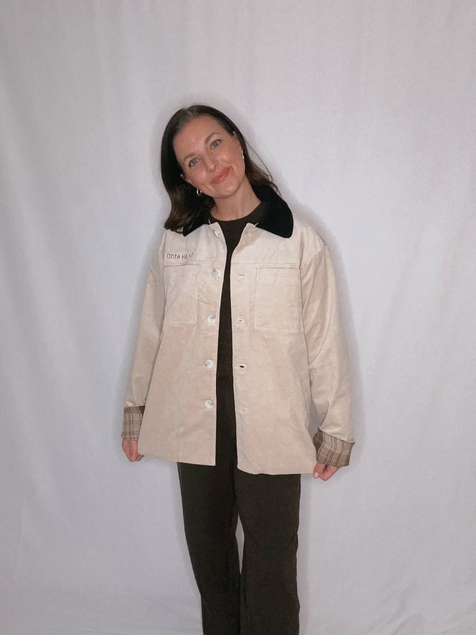 Corduroy button-down barn coat with inner plaid print. This rugged coat features a classic button-down front and is crafted from soft, durable corduroy. The inner plaid print adds a touch of vintage charm and warmth. Perfect for layering over casual outfits, this versatile coat is ideal for outdoor activities or adding a rustic touch to your everyday look.