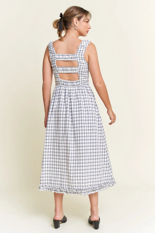 Isaiah 61:1 Navy Checkered Smocked Detail Midi Dress